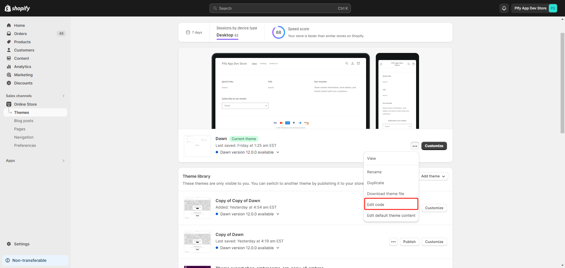 1. Click Edit code in your live theme.