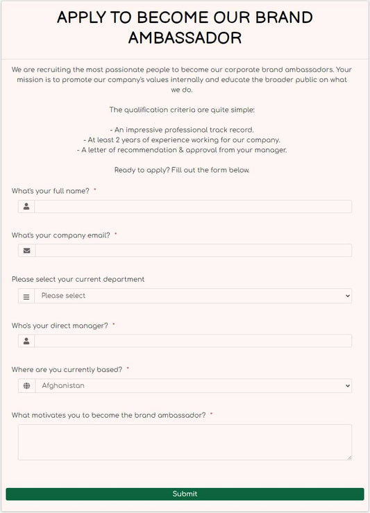 Brand Ambassador Application Form