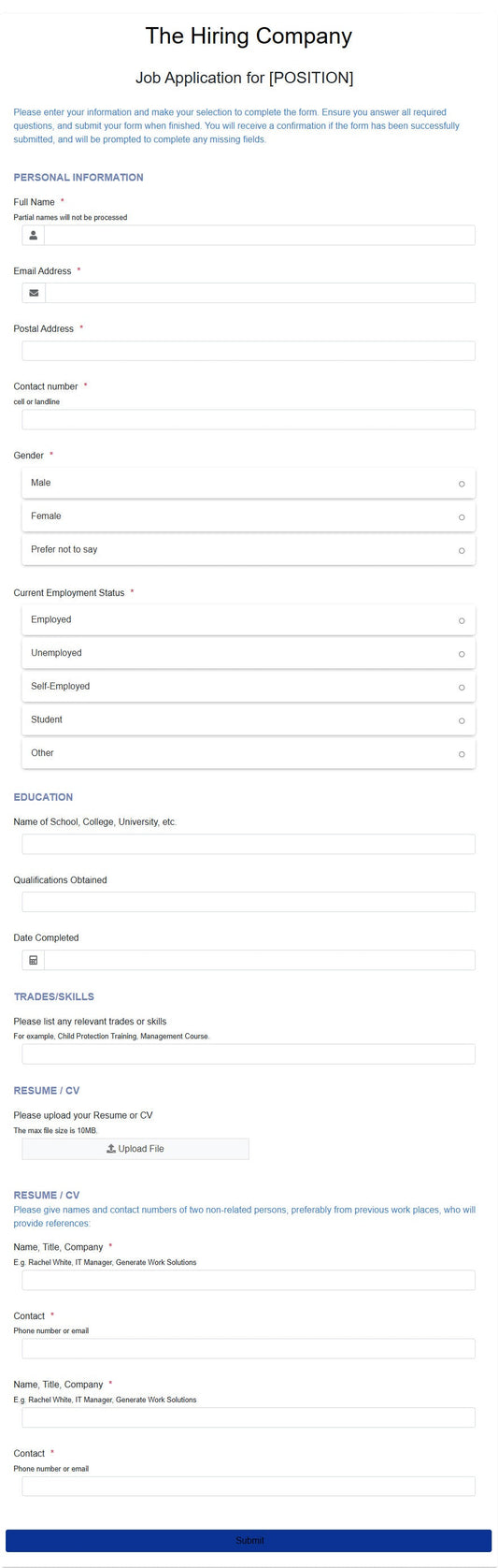 Job Application Form