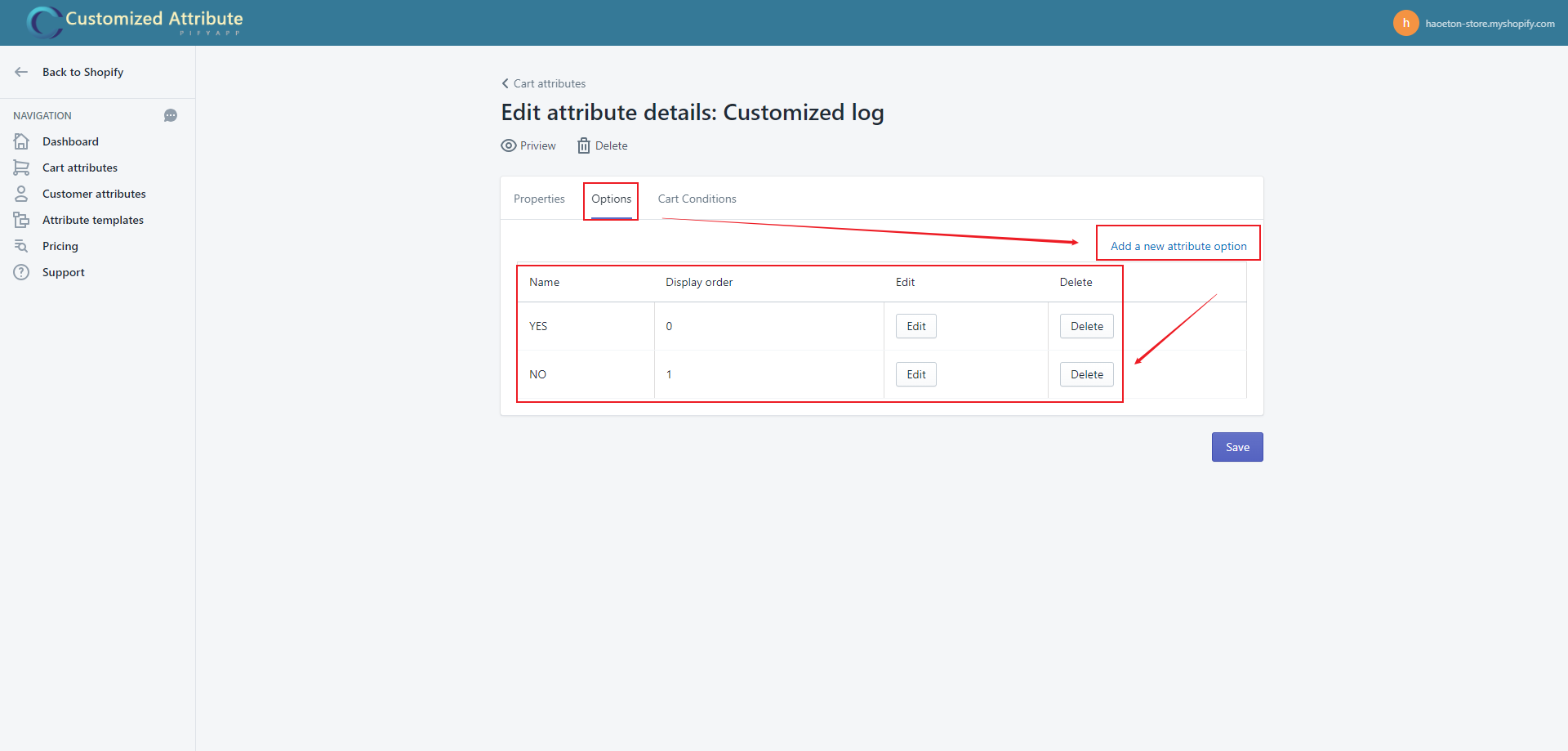 3. Set cart conditions which decide how the attribute available, it is optional.