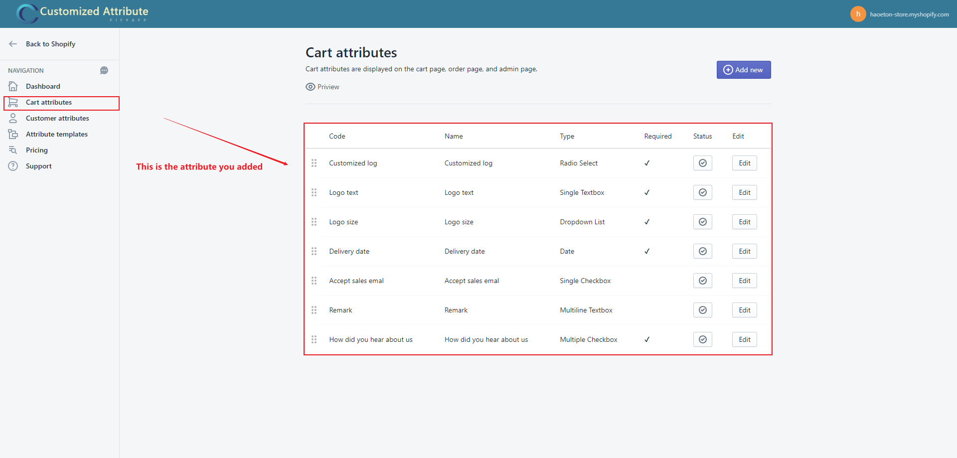 Cart Attribute represents the position of the added shopping cart attribute. If it does not meet the position you need or you didn't find the app blocks on your cart template of your theme, please contact us for assistance.