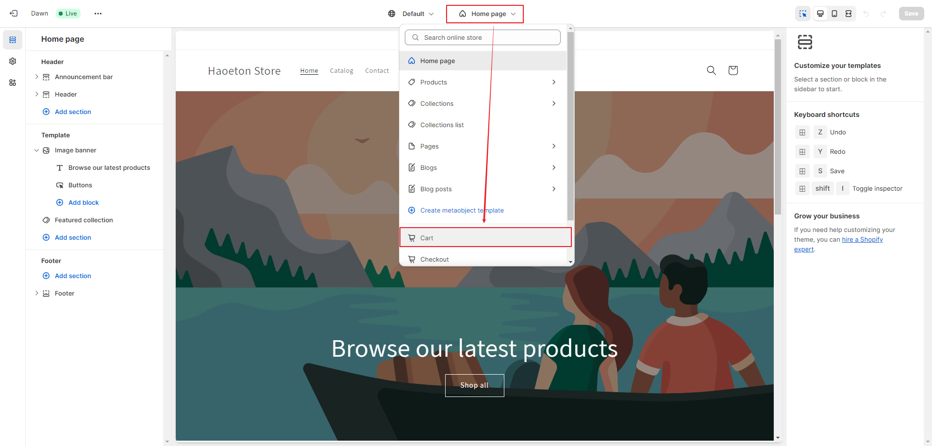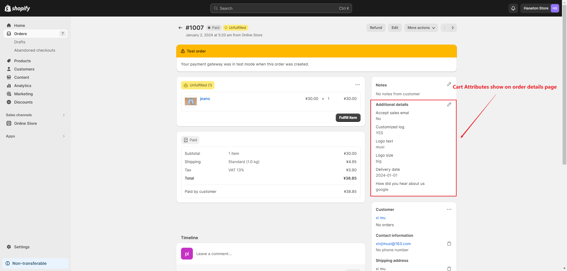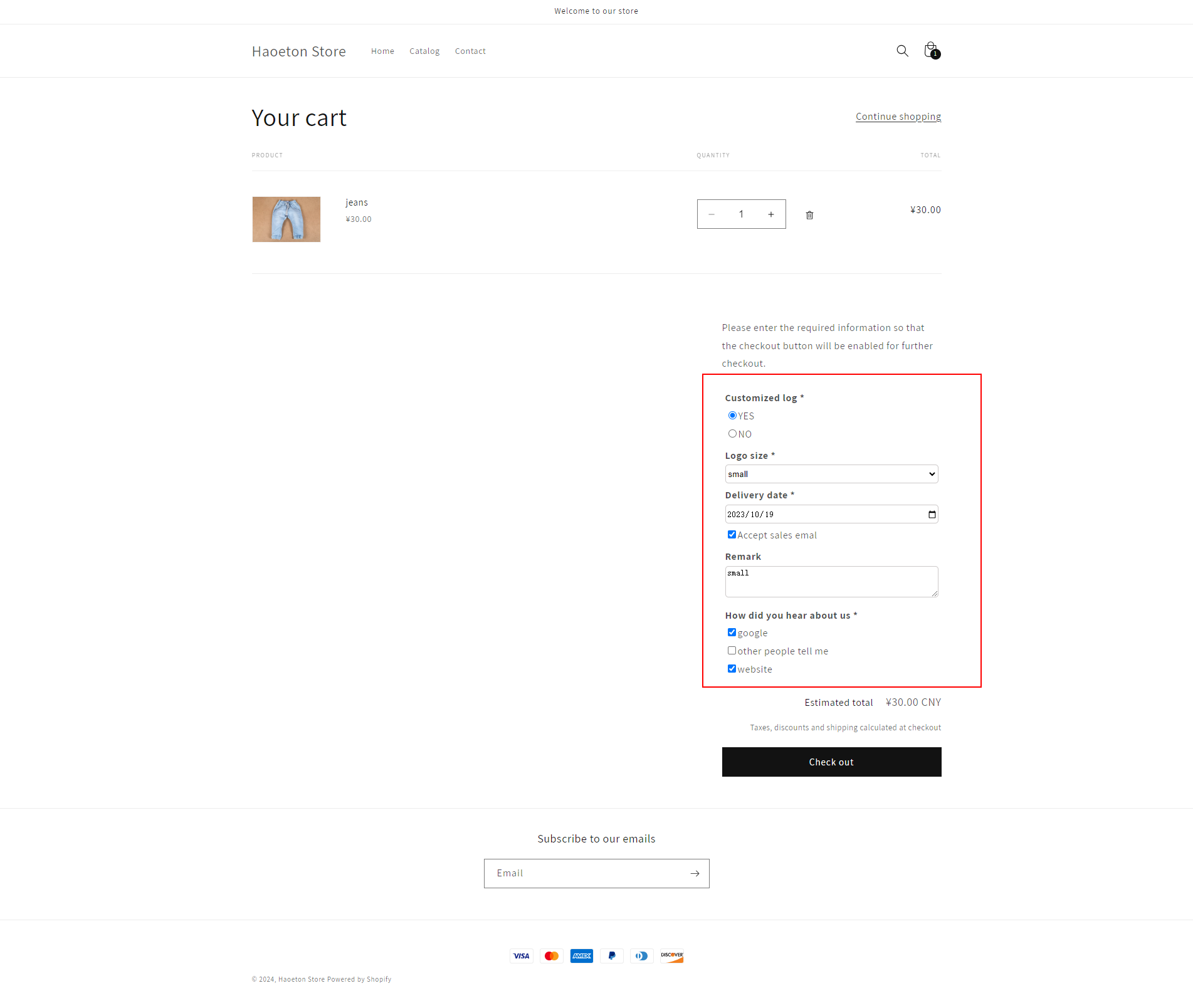 5. When there are products in the shopping cart, the shopping cart attributes will be displayed on the shopping cart page.